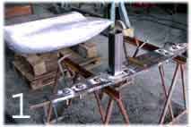unter Ihrem Boot, möglicherweise nach vorheriger Abkühlung. Bohren Sie Löcher für Schrauben, die angeschweißt werden, während der Flansch mit der Unterseite nach oben liegt, und denken Sie auch an Löcher für die durchgehenden Befestigungsschrauben. Messen Sie den Abstand zwischen Flansch und Kiel und schneiden und verschweißen Sie die Verstärkungselemente im Körper, im Beispiel 80 x 80 x 5 mm. RHS Vierkantrohr.