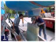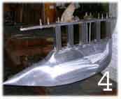 11-12. Der Kiel wird auf das Boot montiert und der Übergang zum Rumpf geformt, gespachtelt und geschliffen.