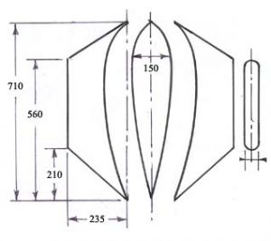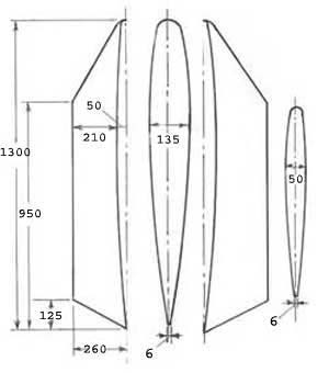 So montiert, dass die Außenseite des Flügels parallel zur Mittellinie des Kiels ist. Das Längsprofil ist symmetrisch.