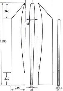 Messung der Vorlage. Kann z.B. erfolgt wie in der Zeichnung vorgeschlagen, ausgehend von einer Linie, die parallel zur Mittellinie des Kiels verläuft. Von dieser Linie aus werden mehrere Punkte gemessen