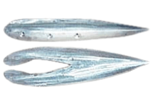Mehr Gewicht im Kiel – wie? Die im Bild dargestellten Flügel und Gewichte A – G werden in Blei gegossen mit Durchgangslöchern und Senkungen für Mutter und Unterlegscheibe geliefert. Abmessungen in mm. und Gewicht in kg. sind ohne Toleranzangaben.